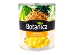 Ананасы консервированные из отборного сорта обладают ярким вкусом и насыщенным ароматом. Продукт уже нарезан на кусочки, что позволяет сэкономить время при готовке. Ананасы идеально подойдут для десертов, салатов, блюд азиатской кухни, а также напитков. Botanica - все, что вкусно выросло. Спелый ананас очищают от кожуры и твердой сердцевины, нарезают небольшими кусочками, а затем консервируют в сладком сиропе. В консервированном виде эти фрукты становятся еще вкуснее и сохраняют большинство полезных свойств. Они обогащают организм витаминами (С и группы В) и минералами (калием, кальцием, марганцем, магнием), а также способствуют нормализации пищеварения. Ананасы можно использовать для приготовления десертов, салатов, компотов, пирогов и пиццы.