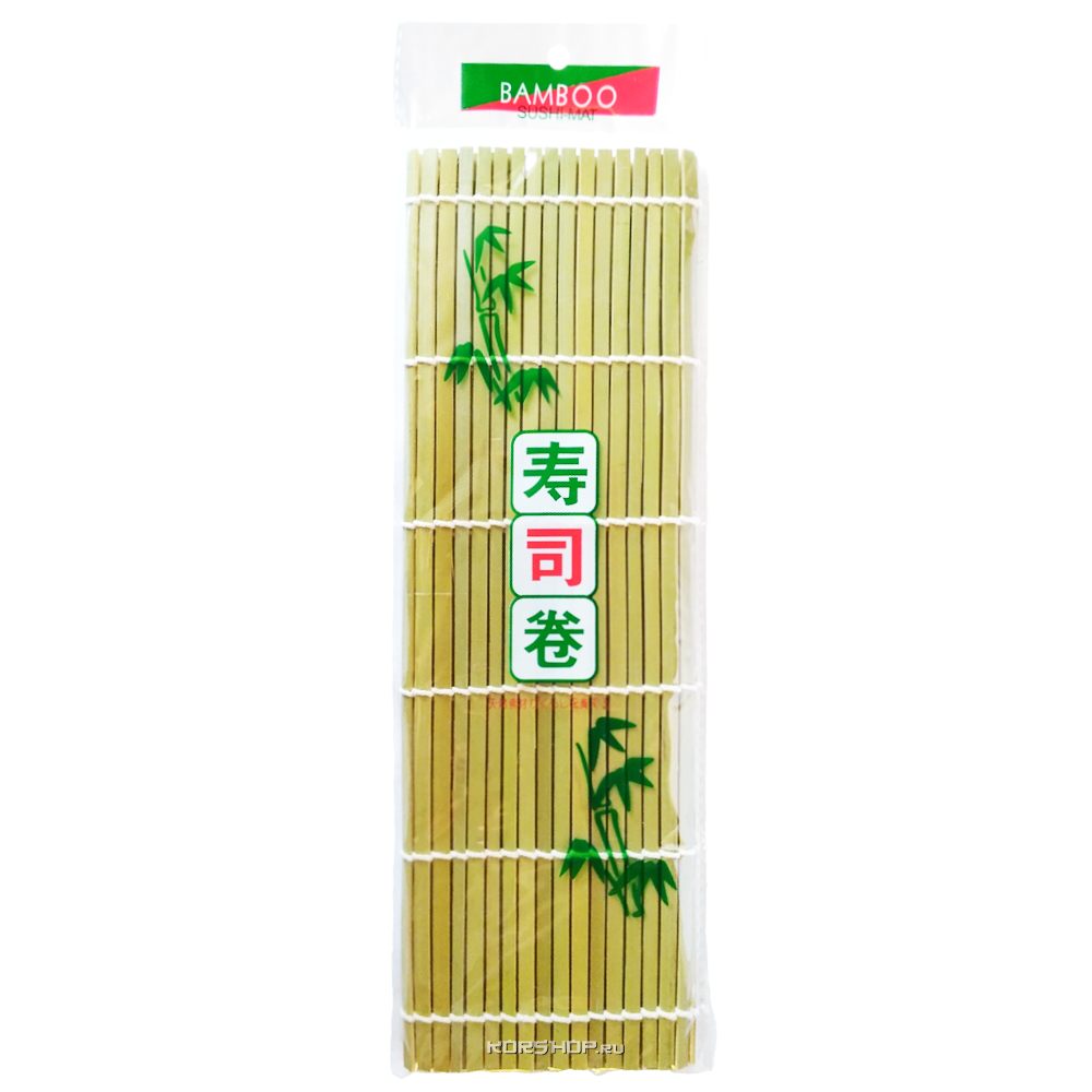 Японская циновка для скручивания суши и роллов, состоящая из тонких бамбуковых палочек, перевязанных хлопчатобумажной нитью.Незаменимый инструмент для любителей японской кухни. Она позволяет легко и быстро свернуть рис и начинку в аккуратный ролл, который затем можно нарезать на порционные кусочки. Циновка изготовлена из прочного материала, который не впитывает запахи и легко моется.