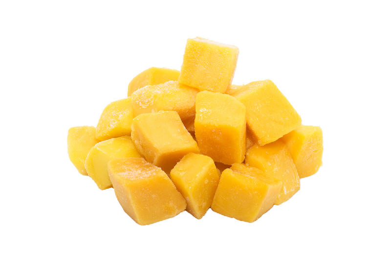 Манго замороженный кубиками. Вкус манго сладкий, с лёгкой кислинкой, аромат сильный, фруктовый. Манго используют для приготовления десертов, фруктовых салатов и сладкой выпечки, также плод прекрасно сочетается с курицей, говядиной и придаёт пикантность салатам и мясным закускам. Сочетая манго с молоком или жирными сливками, получаем отличный завтрак или полноценный перекус перед занятиями спортом. Из манго делают сок и пюре, плоды сушат и варят из них компоты.